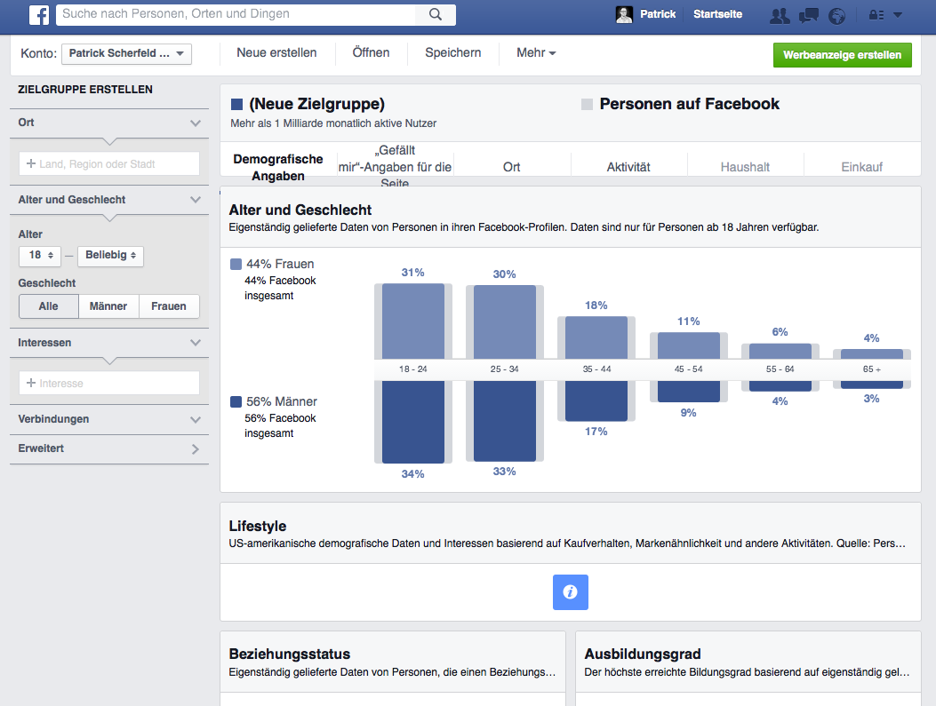Facebook hat für Werber ein riesiges Potenzial. Alleine in Deutschland haben 28 Millionen Menschen ein Facebook-Konto. Doch natürlich sind in der Regel nicht alle 28 Millionen potenzielle Kunden. Es muss daher eine Einschränkung her, damit nicht unnötig Budget für Anzeigen draufgeht, die dann von Menschen gesehen werden, die gar nicht zur Zielgruppe gehören.