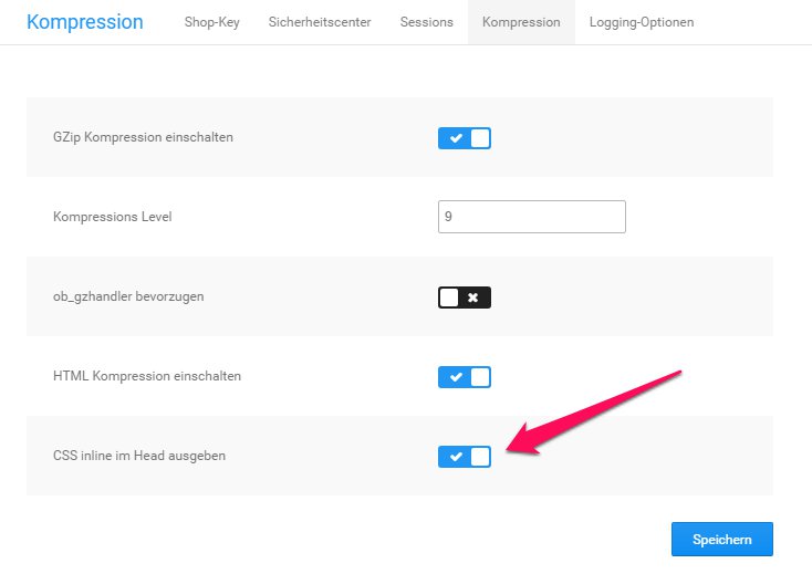 Um schnellere Ladezeiten mit dem Shop zu erreichen, könnt ihr jetzt optional das CSS des Shops statt als Dateilink im HTML auch direkt im Head ausgeben (Shop Einstellungen –> System Einstellungen –> Kompression). Dadurch wird es nicht mehr als blockierende Ressource gewertet und ermöglicht so bessere Testergebnisse.