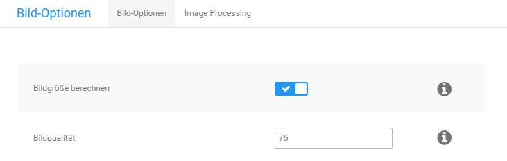 Die Default-Kompression der Bilder im Shop haben wir von 100% auf 75% angepasst, da sich hier in den meisten Fällen die optimale Balance zwischen der Bildqualität und der Dateigröße (wichtig für schnelle Ladezeiten) ergibt. Den Wert könnt ihr natürlich trotzdem immer noch nach euren Bedürfnissen anpassen, die Einstellung dazu findet ihr unter Darstellung –> Bild Optionen: