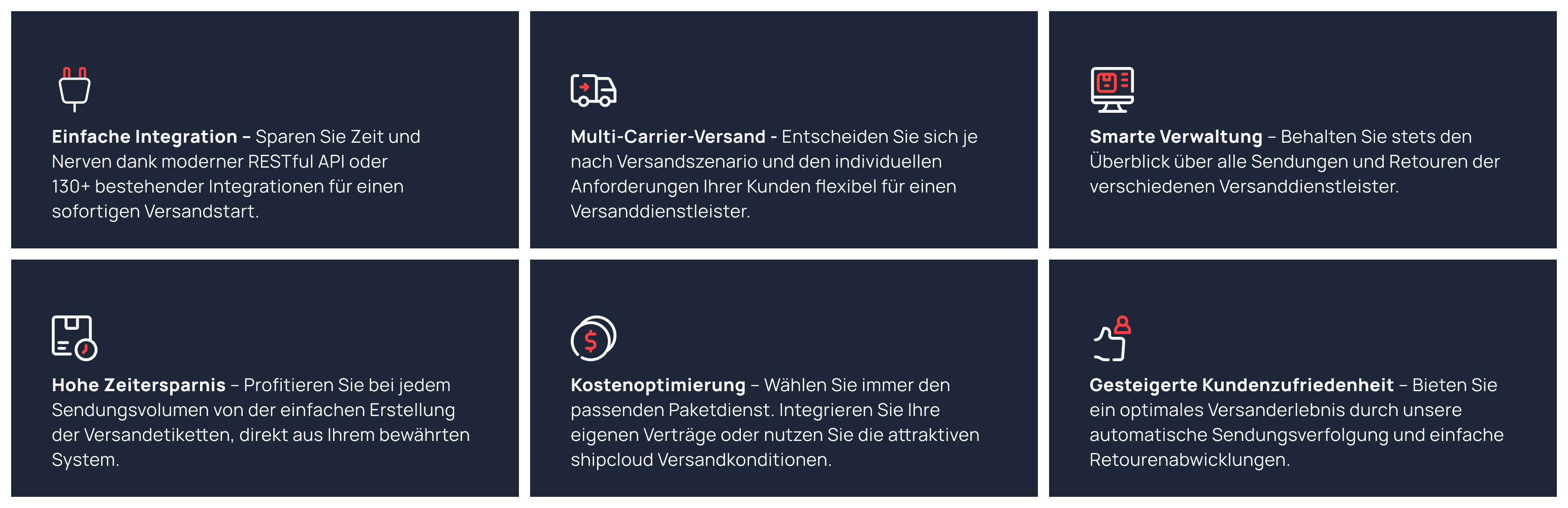 Binden Sie über Ihren shipcloud-Account alle relevanten Versanddienstleister an und bewältigen Sie Ihr Versandgeschäft so effizienter! Nach der Registrierung können Sie sofort Waren mit dem Paket Ihrer Wahl zu günstigen Konditionen verschicken und Ihre Sendungen verfolgen.