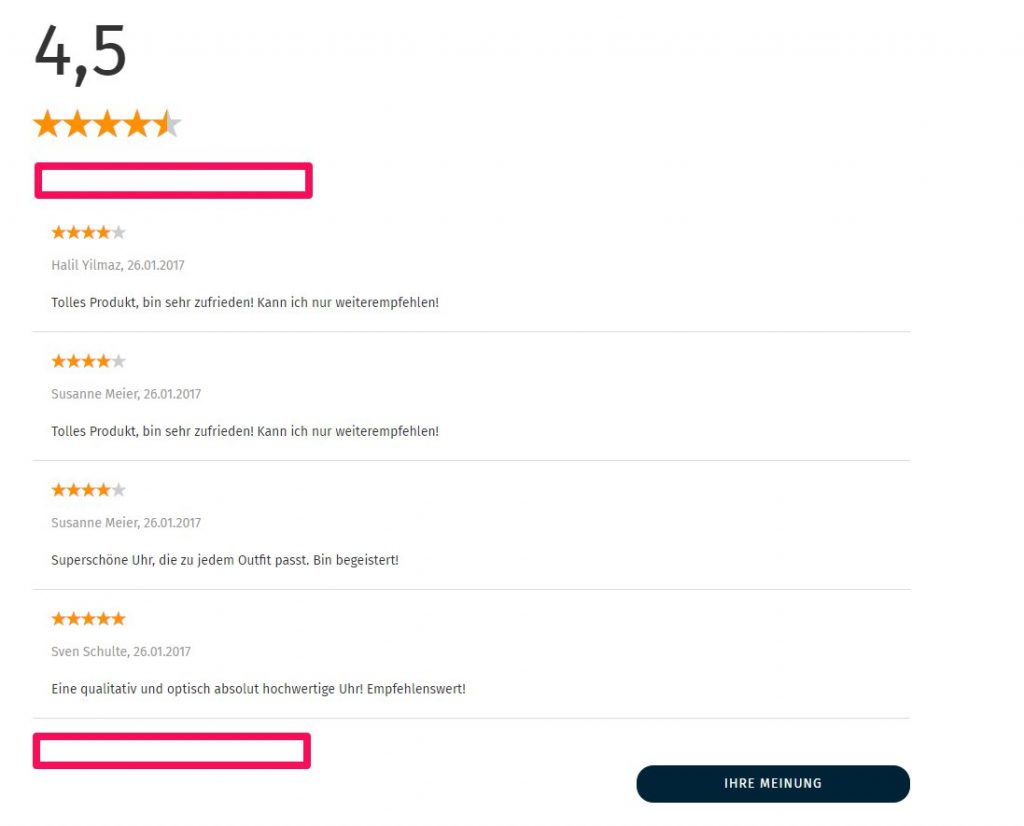Kundinnen und Kunden müssen in unmittelbarer Nähe zu den Bewertungen einsehen können, ob es sich um verifizierte oder unverifizierte Bewertungen handelt, damit sie eine bewusste Kaufentscheidung treffen können.