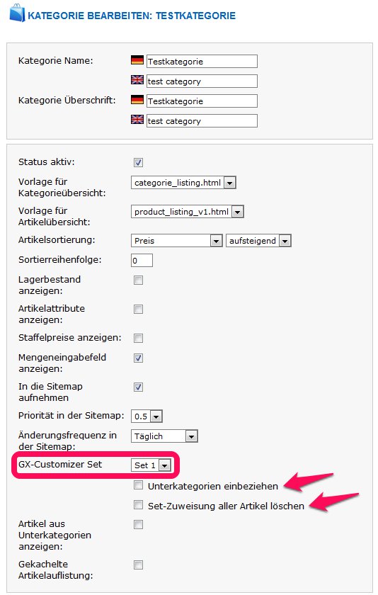 Ein GX-Customizer-Set einer Kategorie zuweisen