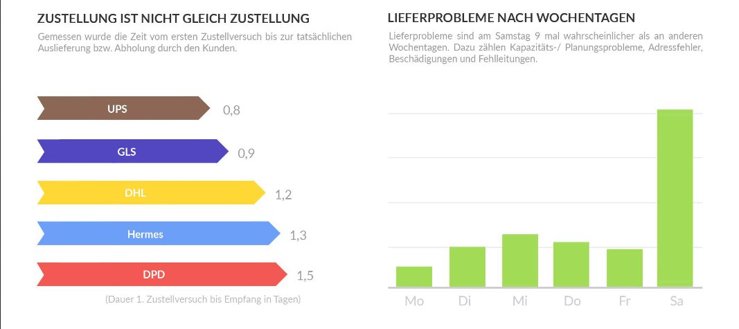 Dabei darf natürlich nicht vergessen werden, dass a) dazu auch Zustellungen an den Nachbarn gehören und b) nicht immer das Unternehmen dafür verantwortlich ist, wenn ein erster Zustellungsversuch scheitert.
