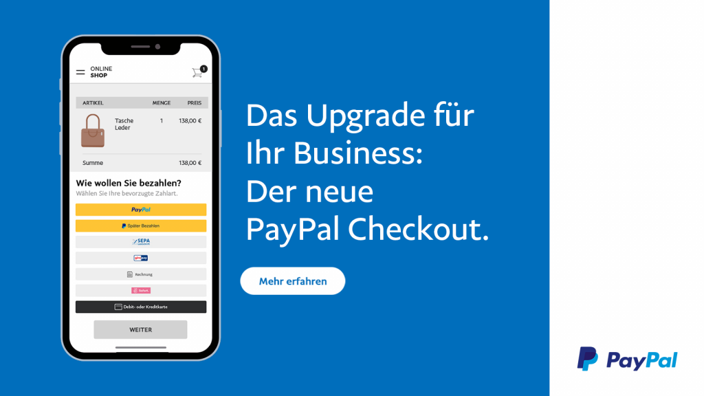 Wer online abliefern will, muss den hohen Anforderungen potentieller Kund:innen auf der ganzen Welt gerecht werden, sich international aufstellen und neben der lokal favorisierten Zahlart auch flexible Finanzierungsmöglichkeiten bieten. Nur so haben Händler:innen eine Chance, sich im Wettbewerb von der Konkurrenz abzuheben. Hierzu liefern Online-Zahlungsanbieter wie PayPal tolle Lösungen. Das neue PayPal Checkout stellt das technische wie funktionelle Upgrade zu PayPal PLUS dar und hebt deinen Onlineshop und damit deinen Erfolg auf das nächste Level. Mit der neuesten Technologie, fortlaufenden Updates und Innovationen sowie verbessertem Betrugsschutz kann PayPals neue Komplettlösung deinen Shop zur Nummer Eins für Kund:innen und zum Selbstläufer für dich machen. PayPal Checkout ist die richtige Wahl für dein Business – egal ob E-Commerce-Neuling oder erfahrene/r PayPal PLUS Nutzer:in.