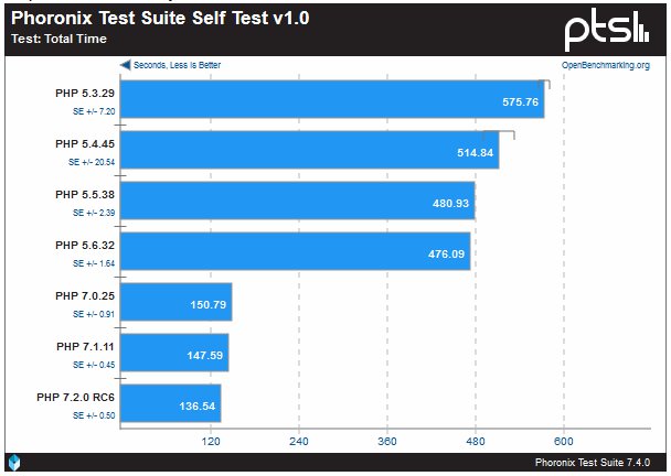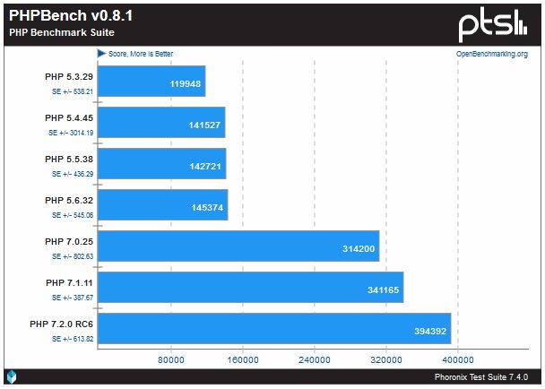 Tatsächlich lassen sich in den aktuelleren PHP-Versionen ganz eindeutige Performance-Vorteile gegenüber den Vorgängern feststellen: