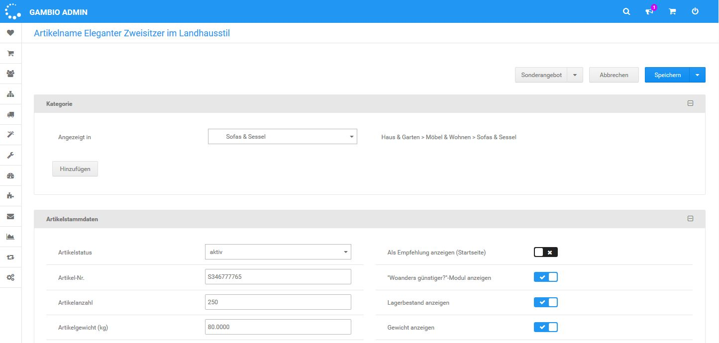 - Schnell und übersichtlich Artikeleinstellungen vornehmen