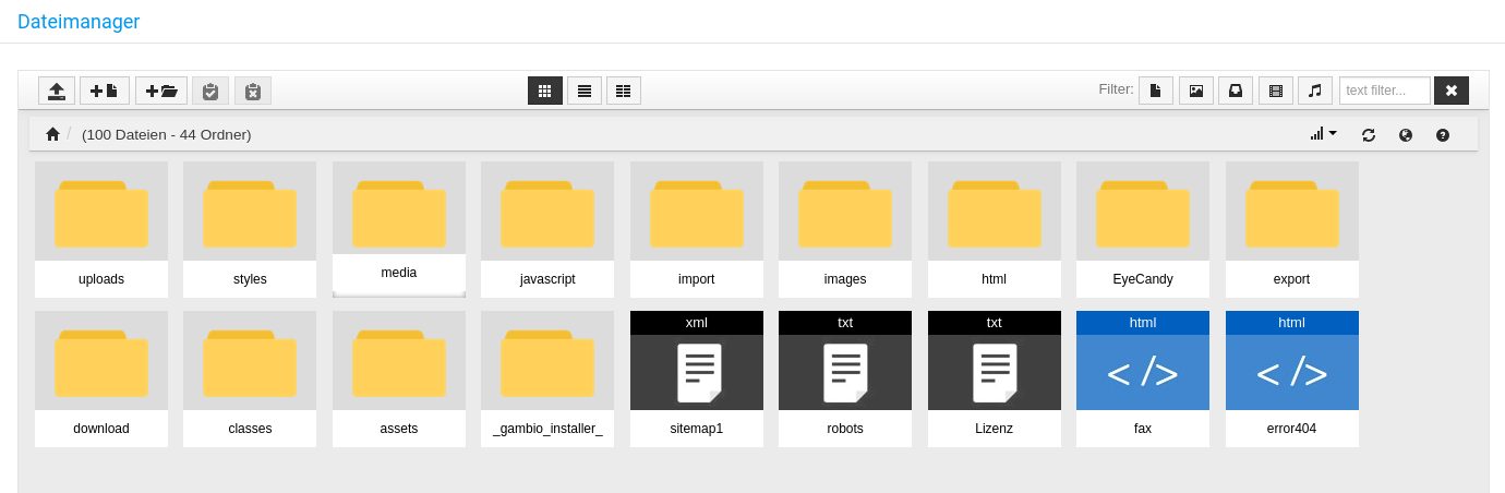 Über den neuen Dateimanager können hochgeladene Dateien und Bilder erstmals zentral im Shop verwaltet werden. Hierfür steht im Bereich Toolbox der Punkt Dateimanager zur Verfügung.