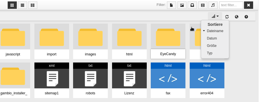 - Sortieren der Dateien anhand verschiedener Kriterien
