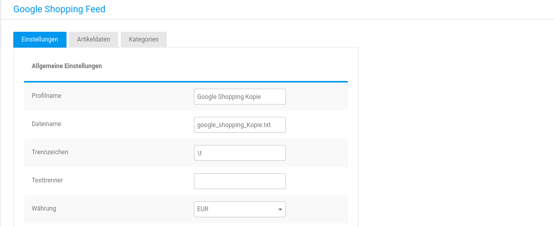 Anschließend kann im Bereich Google > Google Shopping der Datenfeed für Google Shopping eingerichtet und erstellt werden.
