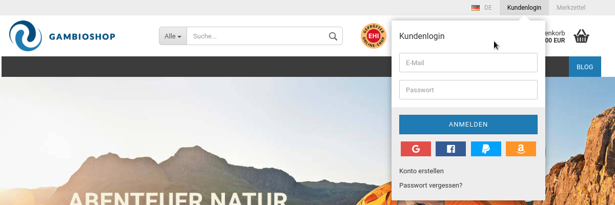 Erstmals haben wir Single Sign-on-Dienste integriert, welche die sichere Anmeldung im Shop über ein Konto bei Amazon, Paypal, Google oder Facebook erlauben. Hierfür kann das Modul im Modul-Center installiert und konfiguriert werden.