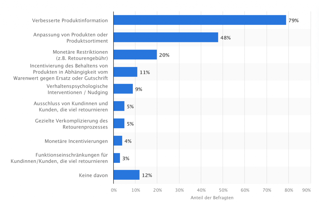 Im Rahmen einer Studie aus dem Jahr 2022 hat die Schweizerische Post Shopbetreiber:innen gefragt, welche Maßnahmen sie verwenden, um Retouren zu vermeiden.