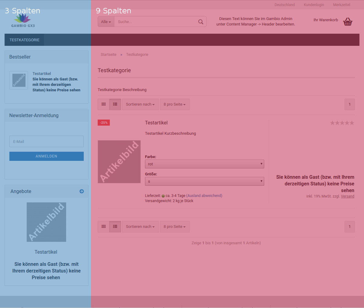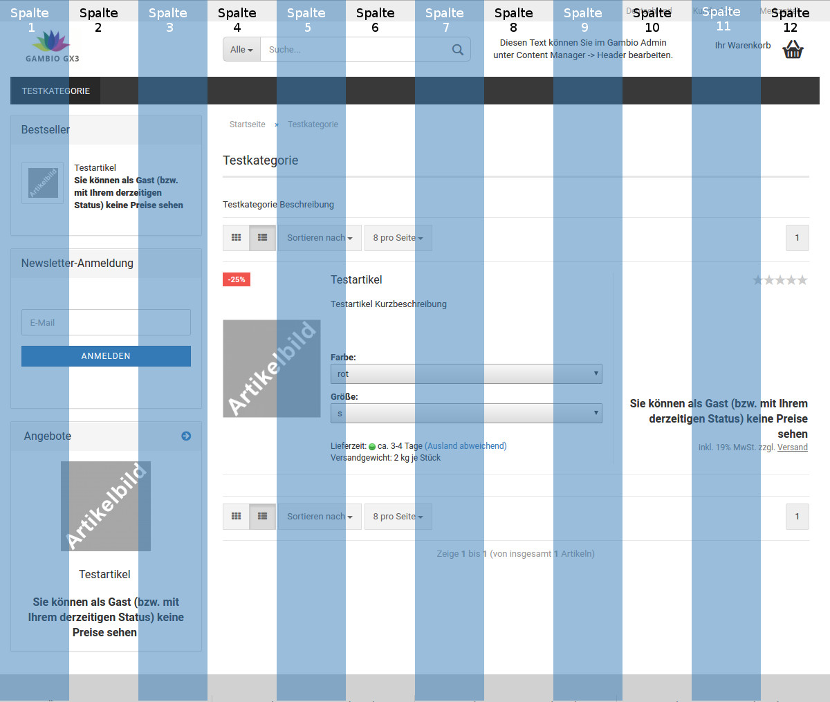 Die Option “Spaltenaufteilung > Groß (Desktops) > Rechts Grid-Spalten Groß” ist für eine optional verfügbare rechte Spalte im Shop vorgesehen, die allerdings individuell angepasst werden muss, da diese nicht zum Standardumfang des Honeygrid-Templates gehört.