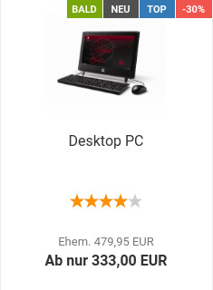- Angebot: Alle Artikel mit einem hinterlegten Sonderangebot erhalten das Angebots-Ribbon. In diesem wird der Prozentwert angezeigt, um wie viel der Artikel reduziert worden ist.