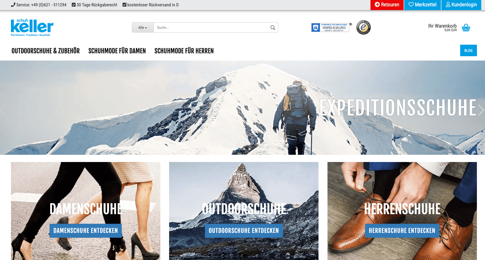 Schon seit über zehn Jahren arbeiten wir mit dem Familienunternehmen Schuh Keller zusammen. Der Onlineshop des Unternehmens zeigt, wie Traditionsunternehmen im E-Commerce langfristig erfolgreich sein können.