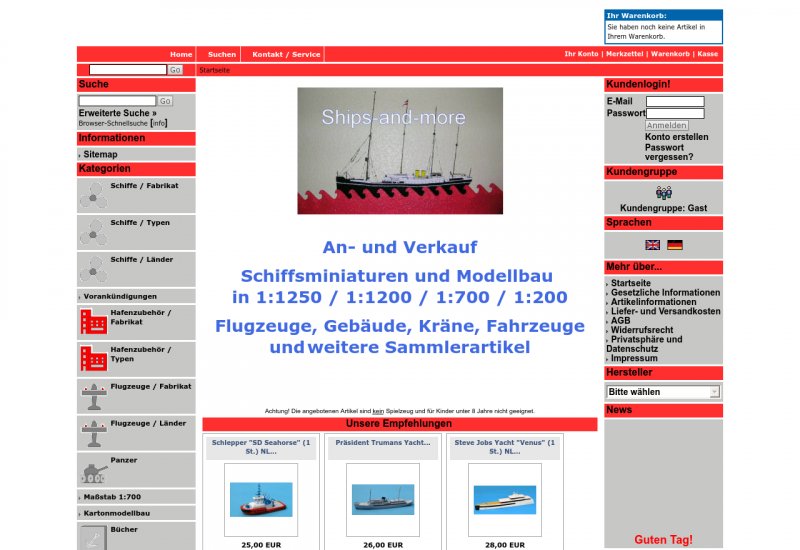 An- und Verkauf von Schiffsmodellen, Hafenteilen und Hafenzubehör im Maßstab 1:1250 / 1:1200 / 1:200. Ebenso in verschiedenen Maßstäben Flugzeuge, Autos und Panzer und weitere Sammlerartikel sowie Marineliteratur. Geführt werden Schiffsminiaturen der Hersteller Triang / Tri-ang, Mountford. Cruise Line Models, Hansa, Delphin, Wiking, Navis/Neptun und Mercator.