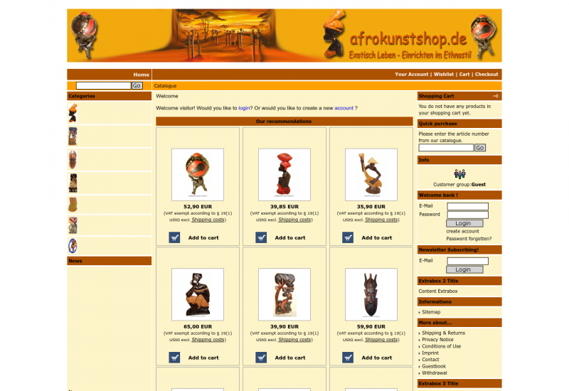 Hier finden Sie exotische afrikanische Kunstfiguren, -Möbel, -Masken, -Schmuck, -Kleidung und Accessoires zum Einrichten und für den Lebenstil.