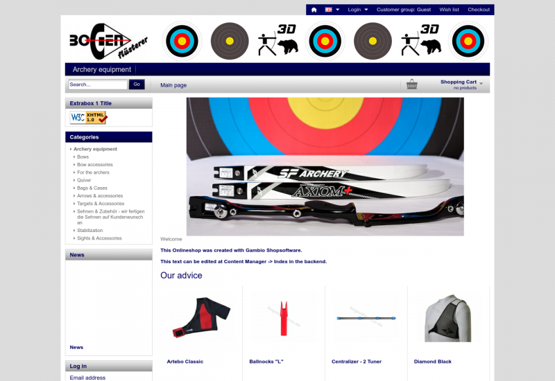Vorstellung und Vertrieb von Sportartikeln und Dienstleistungen im Bogensportbereich.