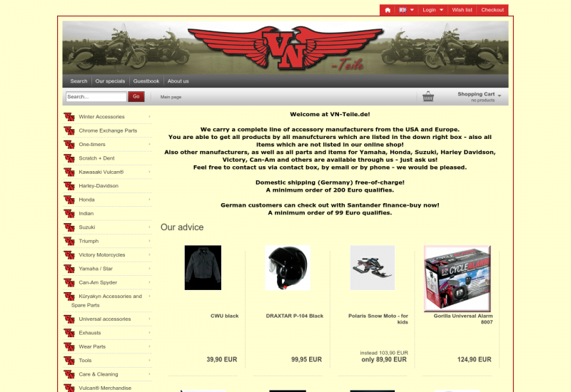 USA-Direktimporteur. Customparts, Anbauteile und Zubehör. Bekleidung und Accessories. Spezialisiert auf Kawasaki Vulcan / VN.
