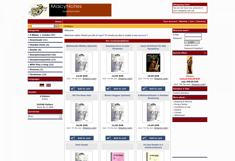 Noten für Saxophon und Saxophonensemble mit "live" eingespielten Hörproben.