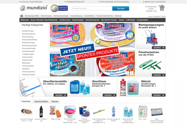 Online Shop für Ihre Sauberkeit. Eine riesige Auswahl an Reinigungs- und Hygieneartikeln.