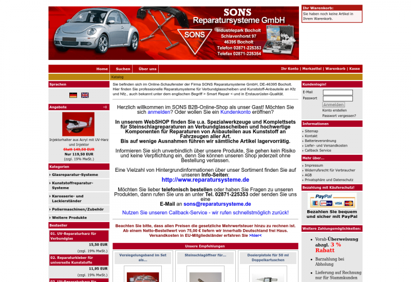 Autoglasreparatur-Systeme, Kunststoffreparatur-Systeme, Lackierständer mit Zubehör, Poliermaschinen mit Zubehör, LED Werkstattleuchten/Handlampen, sonstige Produkte und Hilfsmittel.