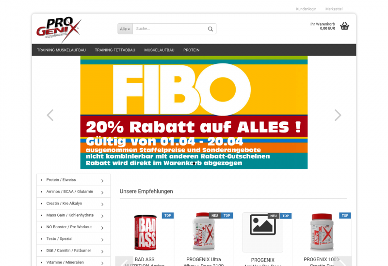 Progenix Sportnahrung für Bodybuilding, Fitness und Kraftsport. Große Auswahl vieler namhafter Hersteller.