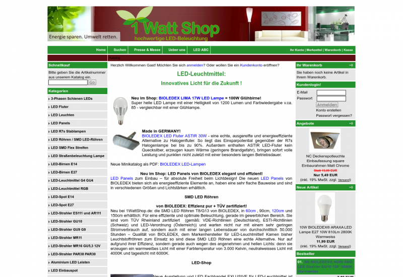 Hochwertige LED - Produkten bringen bis zu 90% Stromkostenersparnis. LED Beleuchtung spart nicht nur Strom, noch ein Vorteil der LED - Technik liegt darin, dass keine Aufwärmzeiten benötigt werden und die LEDs, egal ob LED Lampen, LED Strahler, LED Spots, LED Birne oder LED Leuchtstoffröhre sind, unempfindlicher gegen häufiges An- und Ausschalten (zum Beispiel - im Treppenhaus wichtig). LED Leuchtmittel ist mit verschiedene Sockel verfügbar: MR16, GU10, G4, E27, E14, PAR30, PAR 38, T8/G13, und Lichtfarben: Weiss und angenehm Warmweiss.