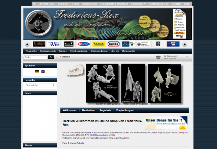 Der Fredericus-Rex Online-Shop bietet dem Zinnfigurensammler eine breite Auswahl von Zinnfiguren, Ölfarben, Pinsel, Dioramenzubehör, Acrylfarben und Uniform-CD`s an.