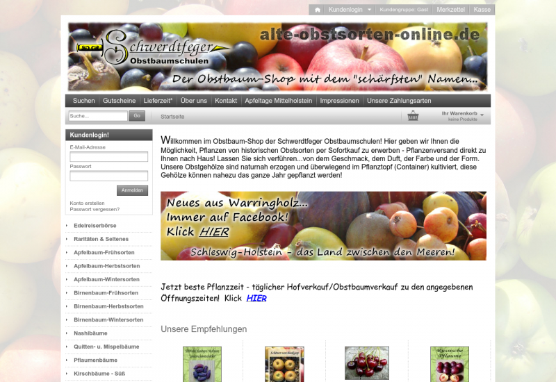 Alte Obst- und Apfelsorten! Besuchen Sie den Obstbaum-Onlineshop der Schwerdtfeger Obstbaumschulen, Obstbäume historischer Obstsorten - selbstverständlich direkt vom Erzeuger! Pflanzenversand europaweit, Ihr Obstbaum-Profi aus Schleswig-Holstein!