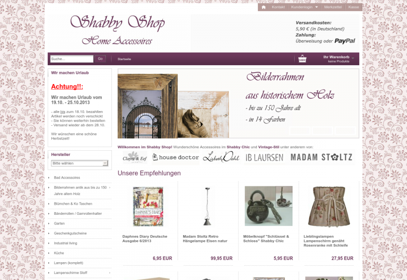 Der Shabby Shop bietet Home Accessoires im Shabby Chic, Vintage- und Landhausstil unter anderem von House Doctor, Ib Laursen oder Lisbeth Dahl.