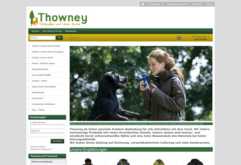 Versand von spezieller, funktionaler Outdoor-Bekleidung für Hundehalter.