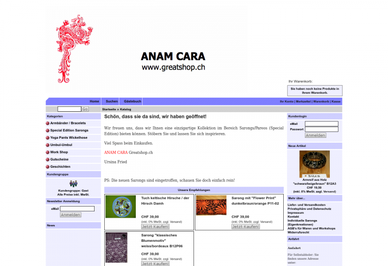 Verkauf von Hand gefertigten Sarongs und Modeschmuck.
