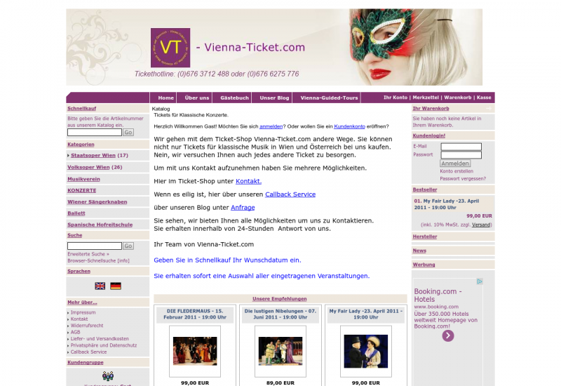 Online Tickets für Klassische Musik, Opern, Operette, Musicals in Wien und Österreich.