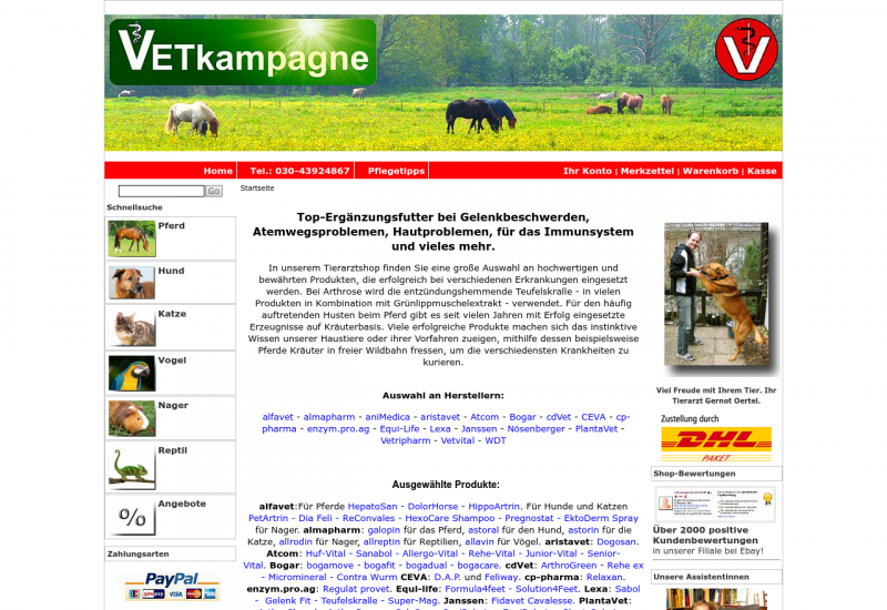 Tierarztspezifische Futter und Futterergänzungsmittel für Pferde, Hunde, Katzen, Vögel, Reptilien und Nager.
