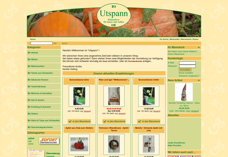 Der Utspannshop - Bei uns finden Sie handgearbeitete dänische Kerzen, Tomte von Ruth Vetter, Dekoratives für Innen und Außen wie zb. Teelichtkränze, Gartenstecker, Gartenlaternen, Feuertöpfe, Weihnachtsdeko, Landhaus, Osterdeko, Metalldeko, Holzdeko, Gartendeko, Windspiele,