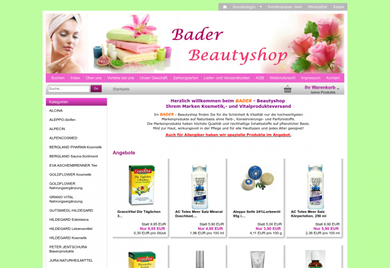 Im BADER - Beautyshop finden Sie für die Haut und Haare nur die hochwertigsten Markenprodukte auf Naturbasis ohne Farb-, Konservierungs- und Parfümstoffe. Die Markenprodukte haben höchste Qualität und reichhaltige Inhaltsstoffe auf pflanzlicher Basis. Mild zur Haut, wirkungsvoll in der Pflege und für alle Hauttypen und jedes Alter geeignet! Auch für Allergiker haben wir spezielle Produkte im Angebot.