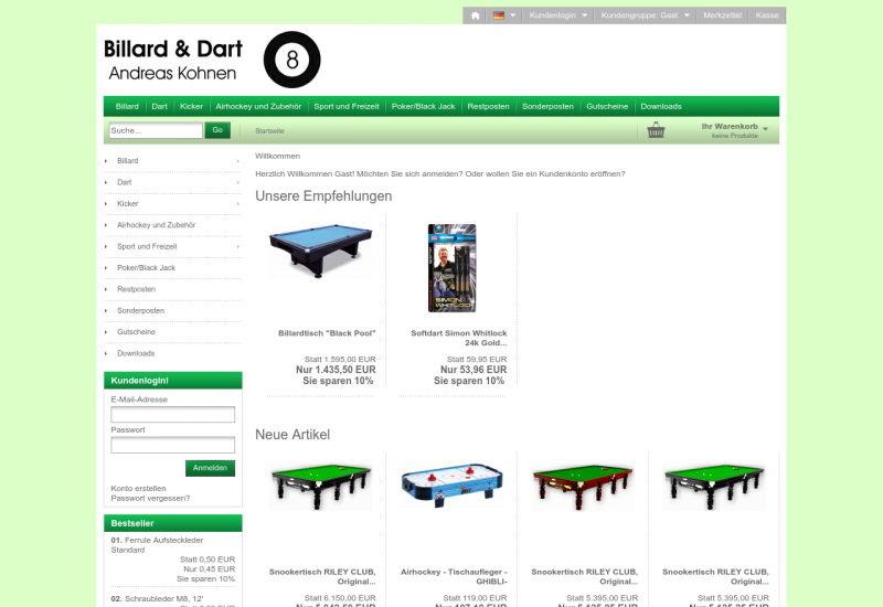 Im Shop von Bill-Dart finden Sie: Billard, Dart, Kicker, Airhockey, Pokale, Bandito Sport Produkte, Montage, Reparatur und Zubehör.