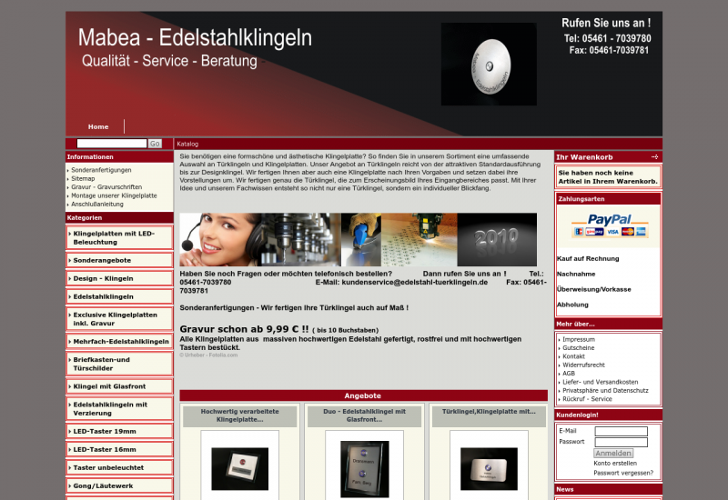 Verkauf von Türklingeln,Hausnummern und Edelstahltastern.