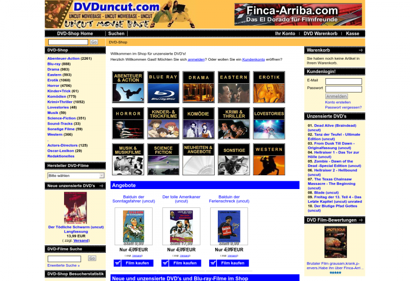 Versandhandel von DVD's und Blu-ray in ungekürzten Fassungen, Datenbank mit über 100 Darstellern und Regisseuren, Oscar-Archiv