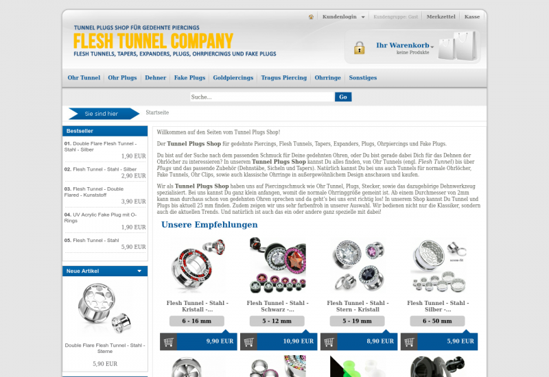 Tunnel Plugs Shop für gedehnte Piercings, Flash Tunnels, Tapers, Expanders, Plugs, Ohrpiercings und Fake Plugs. Versandkostenfreie Lieferung ab 25 Euro!