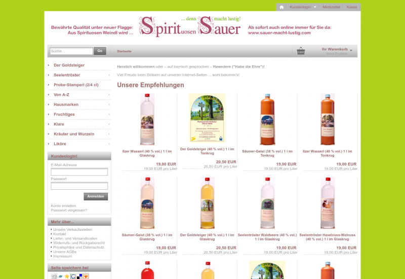 Shop zum Direktvertrieb unserer selbst hergestellten Spirituosen