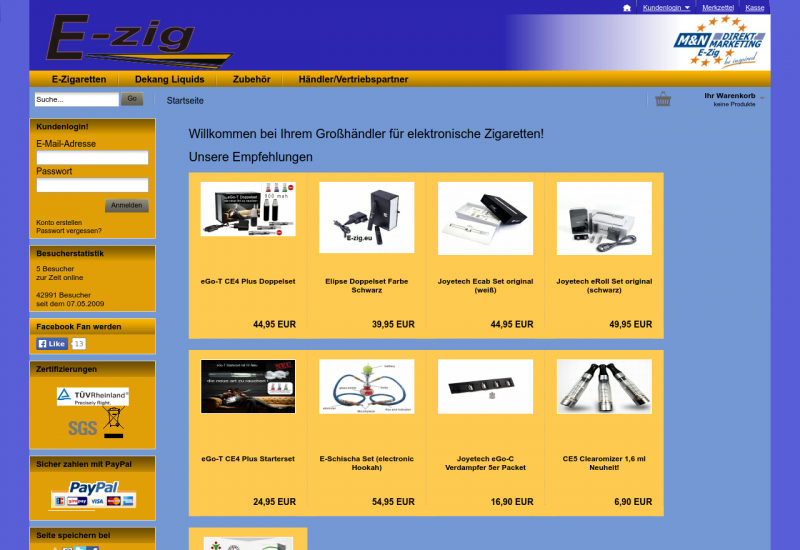 www.e-zig.eu bietet neben der bekannten und zuverlässigen eGo-T, der elektronischen Zigarette "Coffeerette" und dem dazughörigen Zubehör auch exklusiv Beluga Premium Liquids an. Diese Liquids für elektronische Zigaretten sind in der E.U. hergestellt und SGS geprüft.