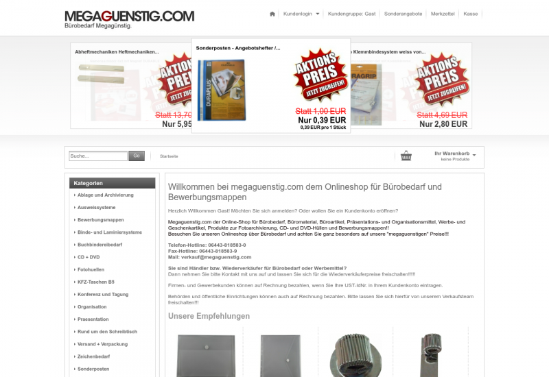 Onlineshop für Bürobedarf und Schreibwaren. Reichhaltiges Sortiment mit ständig wechselnden Sonderangeboten und Sonderposten.