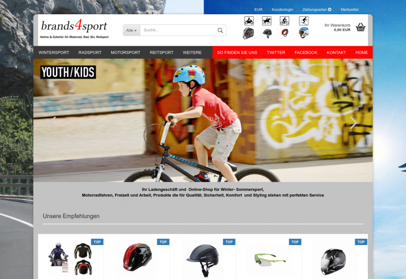Verkauf und Informationen vom Motorrad und Wintersportbekleidung und Helmen.