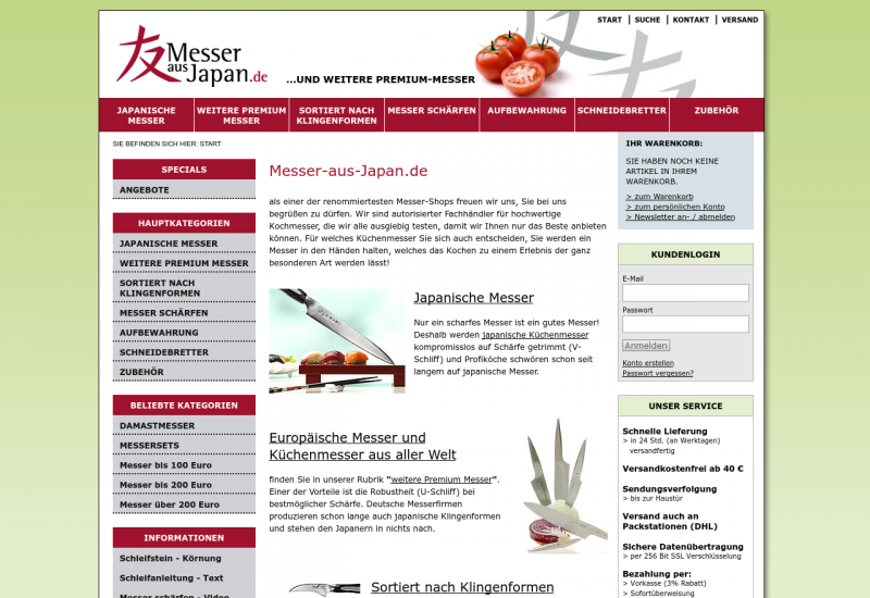Onlineshop der sich auf japanische Kochmesser und hochwertiges Küchenzubehör spezialisiert hat.