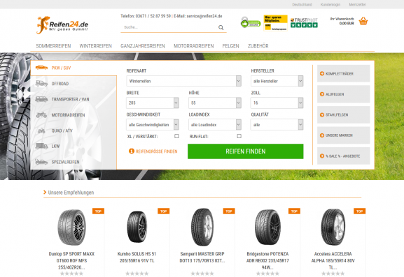 Mit durchschnittlich etwa 28.000 Artikeln bietet Reifen24.de eine sehr breite und dennoch tiefe Auswahl an Reifen für verschiedenste Anforderungen. Egal ob für den PKW, Motorrad, Motorroller oder den LKW-Reifen, Reifen24.de liefert in Rekordzeit deutschlandweit und in viele Länder Europas. Dabei wird allergrößter Wert auf den persönlichen Kundenkontakt und Service gelegt.