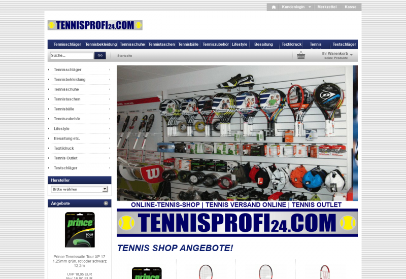 Herzlich willkommen in unserem Tennisshop / Tennisonlineversand / Racketsport Shop / Tennis Onlineversandhandel / Tennis Shop Outlet ! Markenqualität zu attraktiven Preisen! Wenn Sie Fragen haben, rufen Sie uns einfach an oder schreiben Sie uns. Wir freuen uns auf Ihren Anruf und beraten Sie gerne! Tennisprofi24.com!!!!!!!!!!!!!!!!!!!!!!!!!!!!! Der Tennisshop / Tennisonlineversand / Racketsport Shop / Tennis Onlineversandhandel / Tennis Shop Outlet im Internet. Wir führen ein umfangreiches Markenartikel-Sortiment für Tennisspieler, Trainer und Vereine. Tennisausrüstung, Tennisschläger, Tennisbekleidung, Tennistaschen, Tennissaiten, Tennisschuhe, Tenniszubehör und Griffbänder finden Sie in unserem Tennisshop Tennisprofi24.com! Bei uns im Internetshop finden Sie Produkte der Hersteller Wilson, Pacific, Prince, Babolat, Head, Dunlop, K-Swiss, Nike, Adidas, Slazenger, ProsPro uvm. Seit dem 1. Mai 2013 bieten wir zusätzlich zu unserem bestehenden Tennisversand / Onlineversand einen Showroom in der Nähe von Bonn an. Überzeugen Sie sich von unserem professionellen Service, wir helfen Ihnen gerne weiter! Ihr Tennisprofi24.com-Team