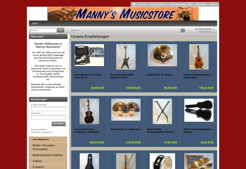 Onlineshop für Musikinstrumente und Zubehör mit Schwerpunkt auf preisreduzierte Ware wie Messeware, Auslaufmodelle, Sonderposten etc.