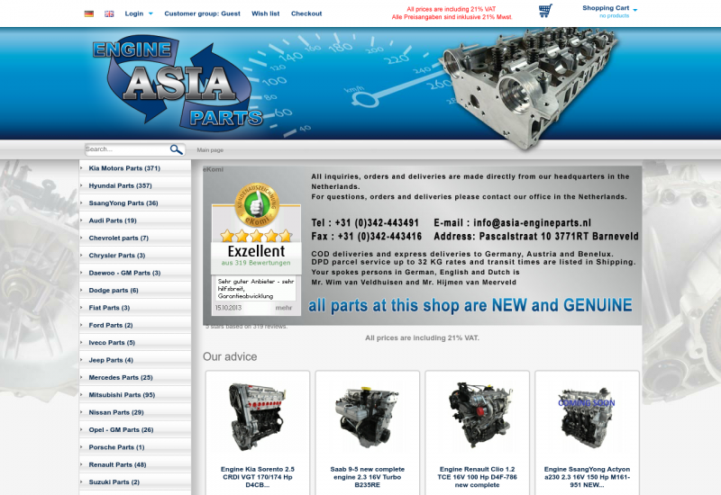 Importeur und Großhändler von Auto Ersatzteilen der Hersteller Kia Motors, Hyundai, Mitsubishi, Toyota, Nissan, Iveco, Opel, Renault, Peugeot, VW, Audi.