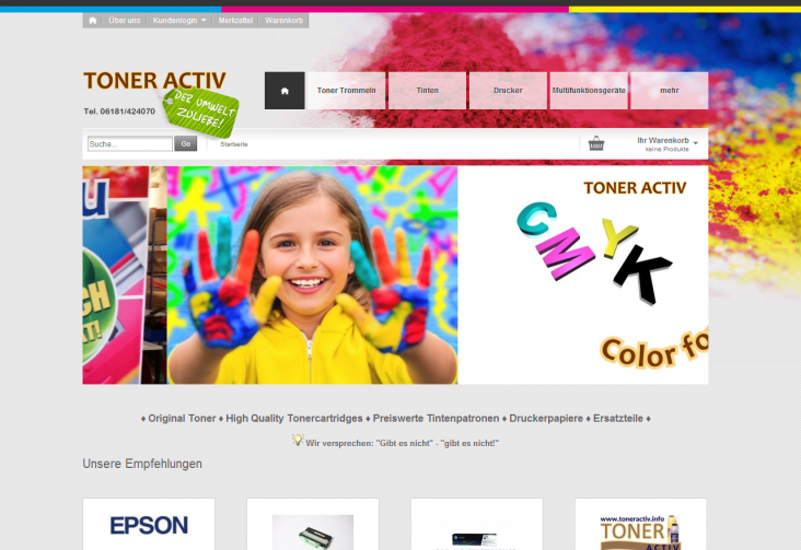 Das Shopangebot von TONER ACTIV umfasst ein sehr umfangreiches Sortiment eigener produzierter, preiswerter, kompatibler Toner, Tonercartridges und Trommeln, die kompletten Verbrauchsmaterialien, wie Originaltoner, Tinten, Farbbänder, Druckerpapiere und Bürogeräte aller namhafter Hersteller.